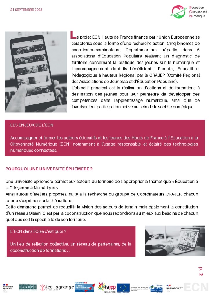 L’action ECN est un projet piloté à l’échelle régionale. Toutefois l’action ECN est coordonnée à l’échelle départementale par plusieurs associations d’éducation populaire implantées dans les 5 départements des Hauts de France. Vous souhaitez nous rencontrer? Travailler avec nous ? N’hésitez pas à vous référer à la liste de contact.
