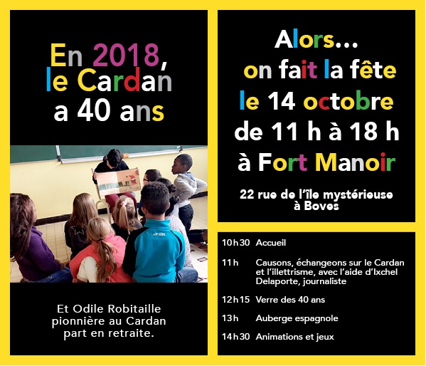 Le Cardan vous invite à fêter ses 40 ans, le 14 octobre 2018, de 11h à 18h, à Fort Manoir (Boves – 80).