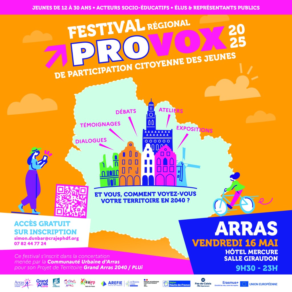 POURQUOI UN FESTIVAL PROVOX A ARRAS ? Le Festival régional PROVOX 2025 de participation citoyenne des jeunes qui s’est tenu à Arras, s’inscrit dans le programme PROVOX qui porte et fédère la participation citoyenne des jeunes de 15 à 30 ans dans notre région. Il contribue à promouvoir l’engagement et l’expression citoyenne des jeunes dans les… Lire la Suite