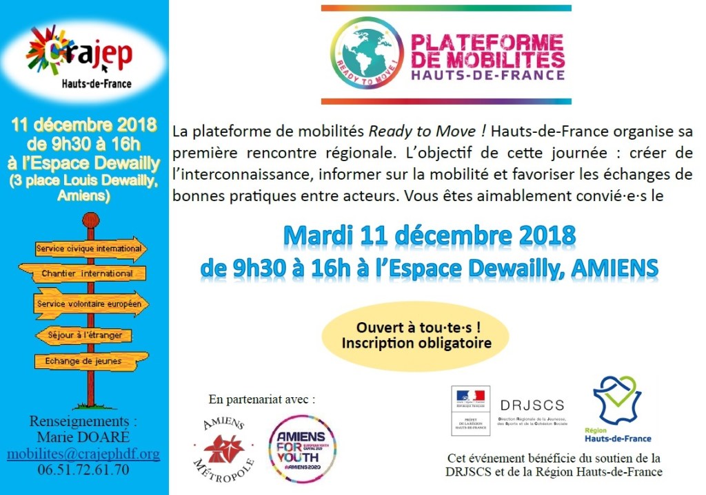 la Plateforme de Mobilités Ready to Move ! Hauts-de-France organise un événement régional le 11 décembre à Amiens. La rencontre aura lieu à l’Espace Dewailly.