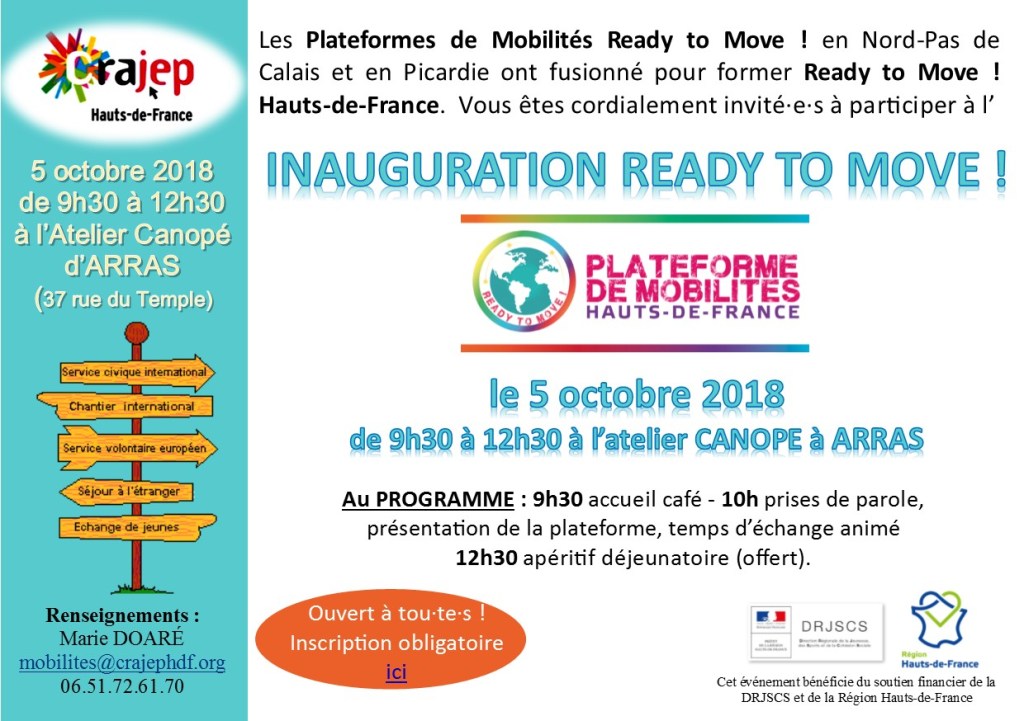 Les Plateformes de Mobilités en NPdC et en Picardie ont fusionné pour former Ready to Move ! Hauts-de-France. L’inauguration aura lieu le 5 octobre à ARRAS