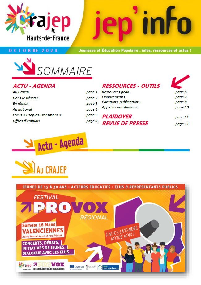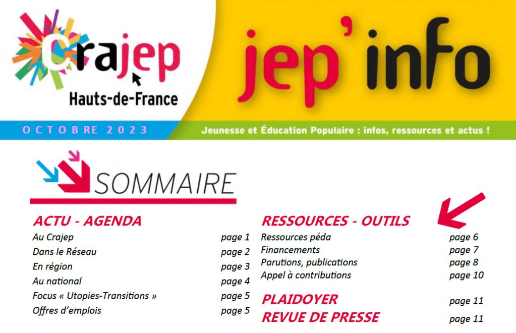 Retrouvez comme chaque mois notre newsletter, la Jep’ info, avec ses différentes rubriques : Actu/Agenda ; Ressources/Outils ; Plaidoyer ; Revue de presse