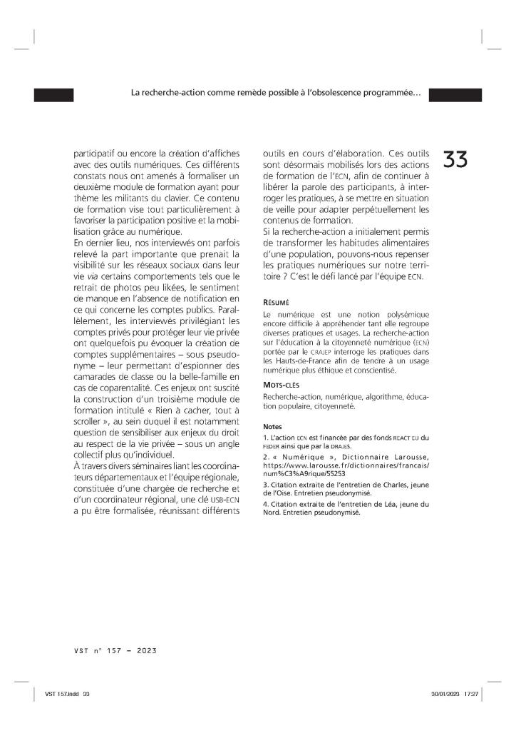 La recherche action comme remède possible à l’obsolescence programmée des formations sur le numérique