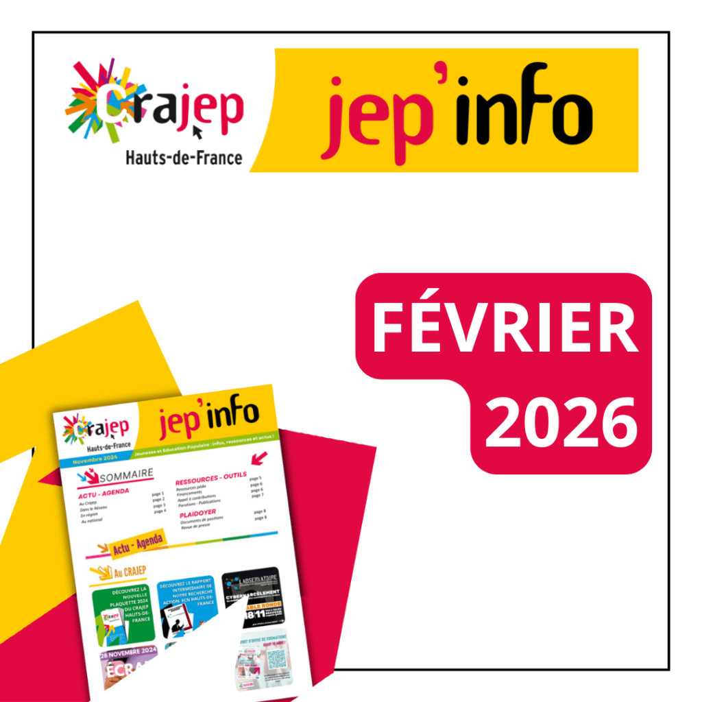 Chaque mois, le CRAJEP Hauts-de-France publie sa JEP’Info, une infolettre destinée aux acteurs et actrices de la jeunesse et de l’éducation populaire.L’édition de février 2026 met en lumière : Découvrez l’édition complète du JEP’Info février 2026 et restez connectés aux dynamiques de l’éducation populaire et de la jeunesse en région !
